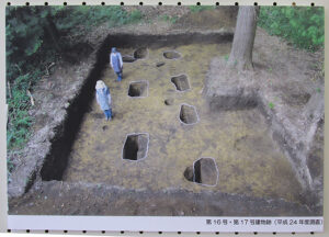 | 建物跡を取り囲む大型溝跡 | 幅約3m 深さ約2m 断面形は逆台形 |