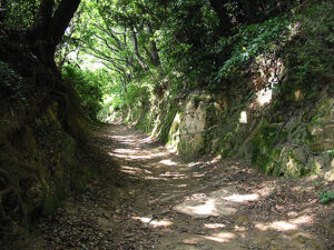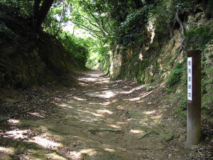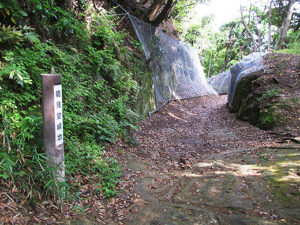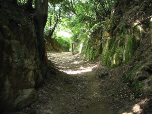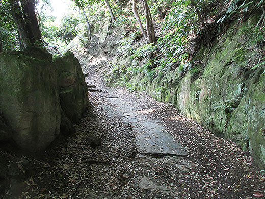 下の写真は上の二つの写真と同じ付近を10年前に撮影したものです。この写真では切通し壁が金網で覆われていないので鎌倉の切通しのような雰囲気が感じられます。