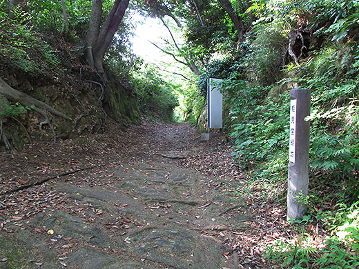 巨福呂坂で鎌倉を出て、「はなれ山」大船ー「すりこばち坂」横浜市栄区小菅ヶ谷と港南区上永谷町の境界付近ー「もちゐ坂」横浜市港南区最戸と南区別所の境の坂ー「岩井原」横浜市保土ケ谷区岩井町ー「かたびらの宿」横浜市保土ケ谷区帷子町というように保土ケ谷の帷子で近世東海道と合流しているルートです。またこのルートは近世の弘明寺道とほぼ同じ道筋であると考えられます。